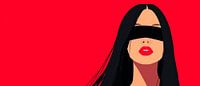 Een krachtig statement in felrood: een mysterieus figuur met geblinddoekte ogen en verleidelijke lippenstift trekt ieders aandacht. Haar charisma wekt nieuwsgierigheid op en brengt een gevoel van intimiteit en elegantie over. Dit indrukwekkende kunstwerk is perfect voor een moderne woonkamer of een creatief kantoor waar het een gesprek kan stimuleren.