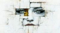 Dit werk vertelt een verhaal over geheimen, verval en de onverbiddelijke onthulling van de waarheid. Een gezicht, bijna spookachtig, verbergt zich achter een gebarsten muur - alsof het in een vergeten tijd is ingemetseld en zich daar nu langzaam van bevrijdt. De beschadigde, broze structuren openen een smalle opening waardoor de ogen…