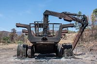De heftige bosbranden in het zuiden van Portugal 2018 hebben een naar beeld achter gelaten. Grote gebieden totaal verwoest. Ook de werktuigen zijn achtergebleven en totaal uitgebrand.
