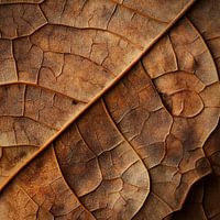 Er ontvouwt zich een harmonieus samenspel van aardse bruine en beige tinten, terwijl de filigrane nerven van de bladeren in elegante patronen met elkaar zijn verweven. Elke groef vertelt over de tijd die is verstreken en de schoonheid die schuilt in vergankelijkheid. Een fascinerende dans van de natuur die de diepe rust van de herfst vastlegt.