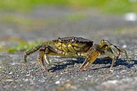 Een verdwaalde krab op het land bij het Grevelingenmeer