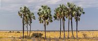 'Verdwaalde' palmbomen in de woestijn, Etosha van Rietje Bulthuis