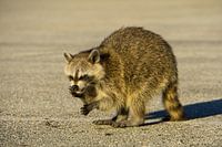 Verenigde Staten, Florida, Eten van bandiet gemaskerde wasbeer in de zon