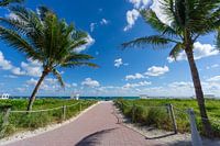 Verenigde Staten, Florida, Pad naar het witte zand van Miami Beach tussen twee