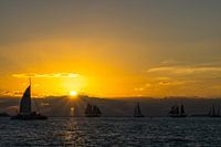 USA, Florida, Spectaculaire zonsondergang in Key West met veel zeilboten op het water en oranje lucht