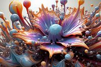 Dit digitaal gemaakte werk past prima bij de door mij eerder gemaakte blauwe paradijs bloem. Als je ze naast elkaar hangt heb je een indrukwekkende set bloemen.
