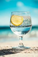 Zonnestralen dansen op het water en geven een bruisend glas verse citroen een vleugje vakantiegevoel. De heldere vloeistof straalt verfrissing uit en roept herinneringen op aan zwoele zomeravonden. Dit beeld is ideaal voor de keuken of eetkamer en brengt een levendige, uitnodigende sfeer.