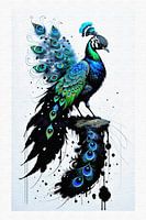 Verfspetter pauw in zwart en kleur van Maud De Vries