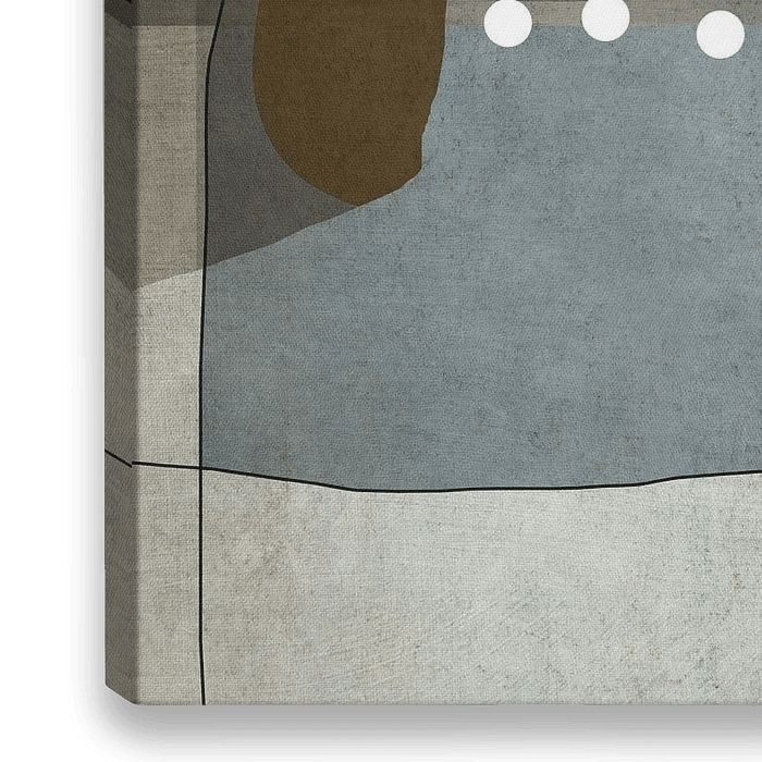 Neutrale tinten en geometrische vormen met grafische elementen kenmerken dit abstracte werk van Roberto Moro.