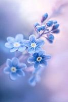Een delicate symfonie in zachte blauwe tinten ontvouwt zich, terwijl kleine, delicate bloemen elegant samen dansen. Hun heldergele hart springt er liefdevol uit en voegt een vleugje vrolijkheid toe aan de aanblik. Als een vluchtige lentedroom stralen ze rust en delicatesse uit, gekoppeld aan een vleugje melancholie.