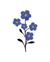 Een bloem in een minimalistisch-abstracte stijl, geinspireerd van vergeet-me-nietjes. De illustratie maakt deel uit van een serie van enkele bloemen, elk geïnspireerd op een echte bloem.