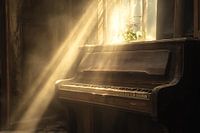 Deze foto toont een prachtige, verlaten piano die in een verlaten kamer staat, omringd door een zacht, stoffig licht dat door het raam naar binnen valt. De warme tinten en de nostalgische sfeer geven een gevoel van vergane glorie en charme. De zonnestralen die door het raam vallen, verlichten het stoffige oppervlak van de piano en…