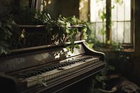 In deze sfeervolle foto zien we een verlaten, verouderde piano die overwoekerd wordt door groene bladeren en takken. Het licht valt subtiel door een nabijgelegen raam en geeft een nostalgisch gevoel aan het beeld. De slijtagesporen en stof op de toetsen getuigen van jarenlange stilte en verwaarlozing. Het contrast tussen de natuur die…