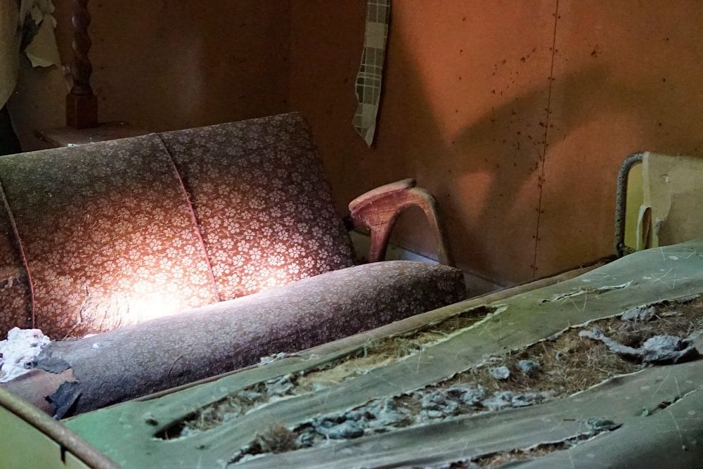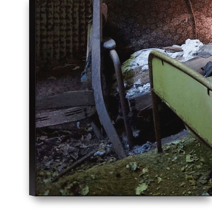 De Slaapkamer, al jaren doorstaat deze de strijd der elementen. De littekens van deze strijd zijn goed zichtbaar in het geheel. De boerderij staat zelfs al zolang leeg dat het tapijt over de balken hangt omdat de vloerplanken zelf al volledig weggerot zijn. Ook zit…