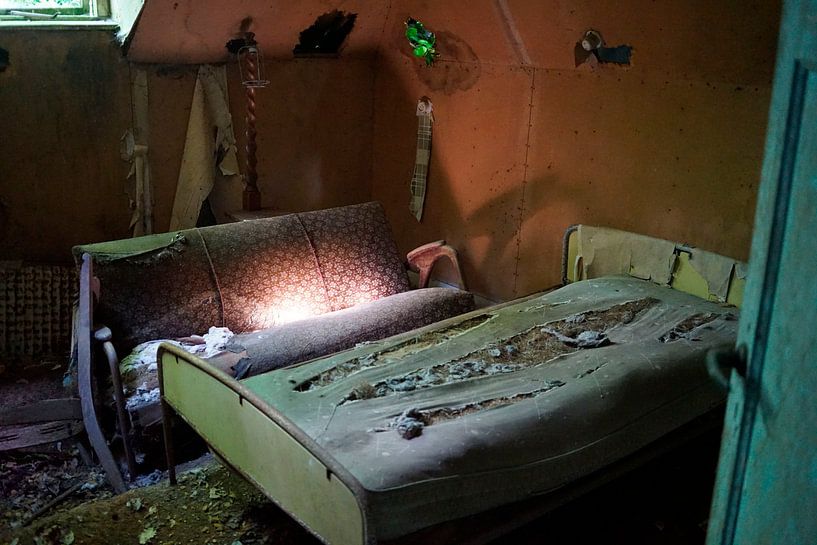 Vergeten slaapkamer in verlaten urbex boerderij. van csurbex.exploring