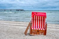 Een eenzame strandstoel buiten het seizoen. Vergeten.