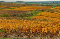 Vergezicht over wijnvelden in de Champagne streek van Frankrijk in de herfst