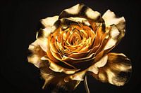 Ontdek een onverwachte elegantie met deze unieke creatie waar de tijdloze schoonheid van een roos samenkomt met de luxueuze uitstraling van goud. Dit stuk straalt een rijkdom uit die zowel klassiek als hedendaags aanvoelt. Het warme goud contrasteert prachtig tegen de donkere achtergrond, waardoor een opvallend stuk ontstaat dat de kijker uitnodigt om dichterbij te komen en de fijne details en subtiele schakeringen te bewonderen. Perfect voor het toevoegen van een vleugje verfijning aan elke ruimte, van woonkamer tot kantoor, dit ontwerp belooft een gespreksonderwerp en een bron van bewondering te zijn.