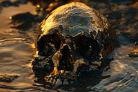 Over ‘Vergulde schedel rustend in schemerig water’ van Art & Soul Creations