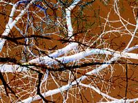 Een wirwar van takken die als regels van een tekst een eigen verhaal vertellen. Sfeervol, mysterieus en kleurrijk.