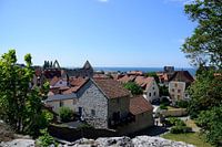 De historische stad Visby op Gotland in Zweden is niet helemaal vlak. Hier naderden we de stad vanaf de parkeerplaats en kregen we dit mooie uitzicht over Visby.