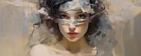 Verhuld | Geheimzinnig Portret - Dit portret spreekt echt tot de verbeelding met een vrouw wiens ogen enigszins verborgen zijn door een doorschijnend masker, wat direct een laag van mysterie en ongrijpbaarheid toevoegt. De stijl balanceert tussen realistisch en impressionistisch, met zachte penseelstreken die de contouren van haar…