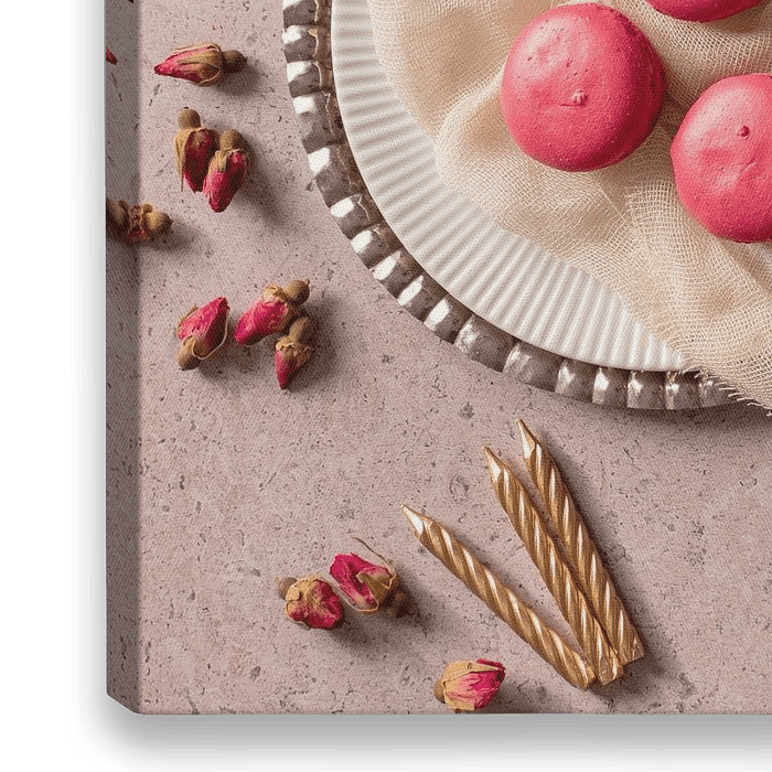 Toen ik deze macarons in de winkel lag, bedacht ik gelijk om er een feestelijke foto van te maken! En zodoende kwam deze foto te stand.