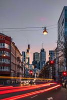 Verkeer in Frankfurt am Main, Geweldige straatfoto in een lange belichting die naar de skyline leidt van Fotos by Jan Wehnert