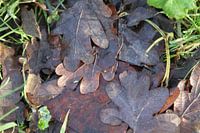 In de herfst verkleuren de bladeren van de eik aan de boom al in de mooiste kleuren en zelfs eenmaal gevallen en liggend op de grond zijn ze nog mooi.