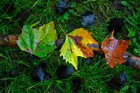 De bladeren vallen van de bomen. Van groen naar bruin.
