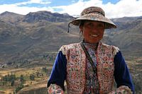 Deze verkoopster kwamen we tegen tijdens een rit door de Colca Canyon. We konden het natuurlijk weer niet laten om iets bij haar te kopen. Als dank wilde ze wel even voor mij poseren