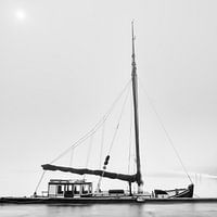 Zeilboot in de mist. Ik raad voor mijn vierkante zwart-witte composities aluminium Dibond onder acrylglas aan, omdat de contrasten nog beter naar voren komen.