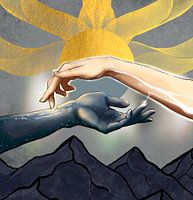 Dit kunstwerk verbeeldt de stille chemie tussen twee mensen. De handen zweven dicht bij elkaar, aangetrokken door een onzichtbare kracht die voelbaar is maar niet zichtbaar. Licht en duisternis ontmoeten elkaar en staan symbool voor verlangen, spanning en emotionele verbondenheid. Het moment vóór aanraking vangt de intensiteit van…