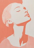Een strak, minimalistisch portret van een vrouw met zuivere lijnen en een kleurenpalet van aardetinten, koraal en oudroze. De focus ligt op haar elegante houding en uitdrukking, met subtiele hints van haar primadonna-karakter. De achtergrond is een eenvoudige gradiënt die de aanwezigheid van het onderwerp en haar ingetogen verlangen…
