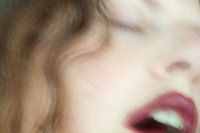 Schilderachtige, sensuele close-up foto van het gezicht van een vrouw met rode lippen