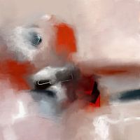 Fantasierijk abstract werk met zachte oranjerode kleurnuances.