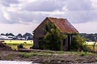 Oude vervallen zeer kleine arbeiderswoning staand langs het water en een voorbeeld van een klein huis.