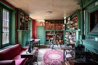 Dit is een foto van een prachtige bibliotheek in een verlaten kasteel. Oorspronkelijk stamt het gebouw uit de 15e eeuw. Het grootste deel van het oorspronkelijke gebouw bestaat echter niet meer. Het 'nieuwe' deel van het gebouw stamt uit de 19e eeuw en is gebouwd in renaissancestijl.