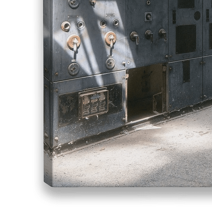 Dit is een foto van een oude en verlaten controlekamer die is gelegen in een gebouw wat nog staat op actief terrein. Toen ik het gebouw aan het verkennen was zag ik op het terrein nog werkmannen lopen die in een van de andere gebouwen aan het werk werken. Deze controlekamer is echter het enige wat nog over is van het verder volledig…
