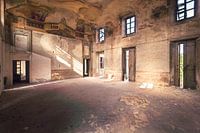 Dit is een foto van een prachtige ruimte in een verlaten villa in Italië. Het volledig plafond is voorzien van een tekening die 'net echt' lijkt. De mooie lichtinval maakt het af.