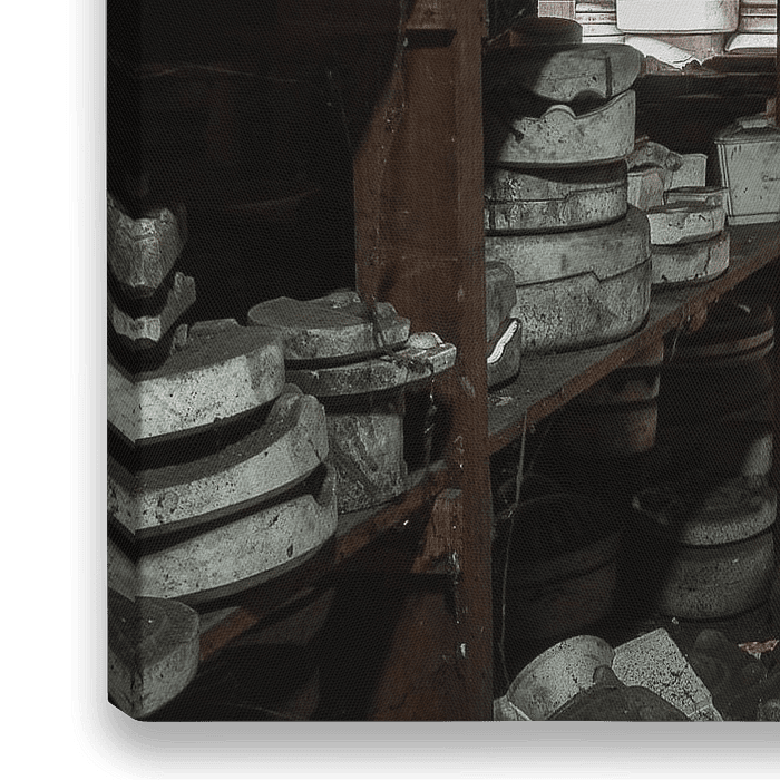 Dit is een foto van een prachtige kleinschalige verlaten keramiek fabriek of pottenbakkerij. Veel voorraad en mallen zijn achter gebleven. Het pand is in hevig verval en houdt naar verwachting niet heel lang meer stand.