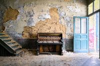 Dit is een foto van een piano die is achtergelaten in een gebouw en in hevig vervaal is geraakt. Er is al in tijden niet meer op dit prachtige instrument gespeeld.