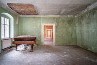 Dit is een foto van een prachtige piano die is achtergelaten in de kamer van een verlaten gebouw. Het gebouw werd waarschijnlijk gebruikt als een huis voor de nabijgelegen fabriek. Dit is het enige object dat is achtergelaten.