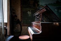 Gelegen op een groot verlaten industrieterrein, heeft deze prachtige villa de tand des tijds doorstaan. Prachtig antiek meubilair is nog steeds intact. Stof bedekt de vloeren. Deze geweldige piano, die in de hoek staat, vangt het enige beetje licht dat in deze bijna pikzwarte kamer valt.