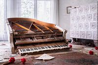 Dit is een foto van een prachtige piano die is achtergebleven op de vloer van een verlaten villa. De villa ligt verstopt van de weg en is omringd met planten en bomen. Je ziet het gebouw niet staan als je niet weet dat het er ligt. Eenmaal binnen trof ik niets aan, op deze piano na.