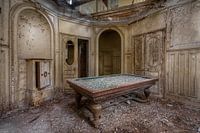 Een pool tafel in een verlaten kasteel in Frankrijk. Het kasteel is gebouwd in de 19e eeuw en verlaten halverwege de 20e eeuw. Bewoont door een rijke eigenaar die het gebruikte als zomerverblijf.