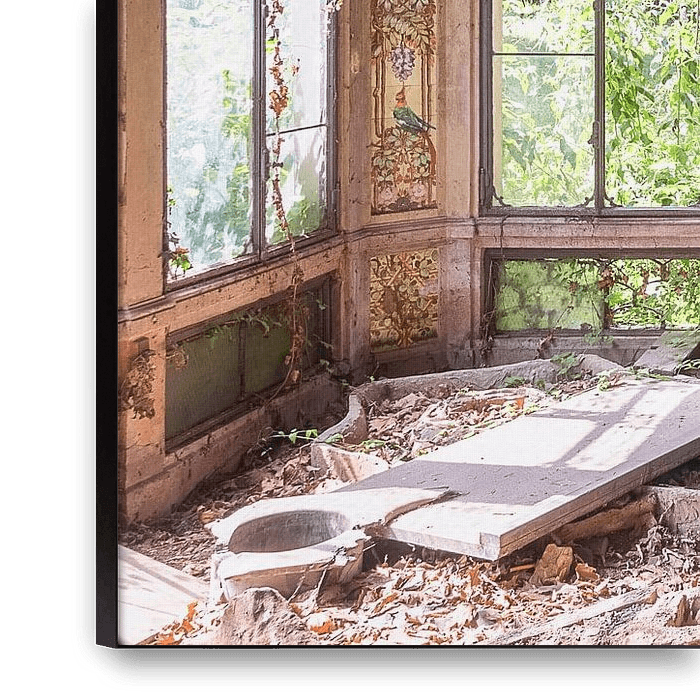 Dit is een foto genomen in de serre van een mooie verlaten villa. De villa is aan het einde van de 19e eeuw als huwelijksgeschenk gebouwd. De architect gebruikte zijn typische neorenaissance stijl door het hele gebouw. Een belangrijk onderwerp van het gebouw is dat alle uitzichten vanuit de ramen van het gebouw dezelfde waardigheid…