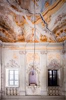 Dit is een foto die ik heb gemaakt bij de hoofdtrap van een verlaten villa. De villa was omgeven door grote velden die werden gebruikt door boeren. Sommige kamers in de villa zijn ingestort. Ik kan alleen maar hopen dat deze prachtige fresco op het plafond van de trap het zal overleven. De grote scheur in het midden is waarschijnlijk geen goed teken.
