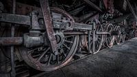 Een stoomlocomotief in een oude Duitse trein remise in Chemnitz. De remise is als museum opgesteld voor bezoekers.