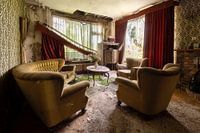 Dit is een foto die ik een paar jaar geleden nam in een verlaten huis. De kamer zoals je die op deze foto ziet, bestaat niet meer. Alle meubels zijn verwijderd. Het stond zo lang in deze staat, zonder graffiti of vandalisme. Verval op zijn best.